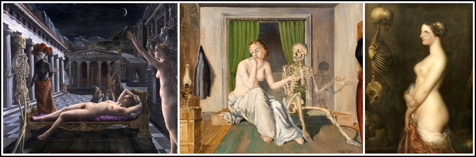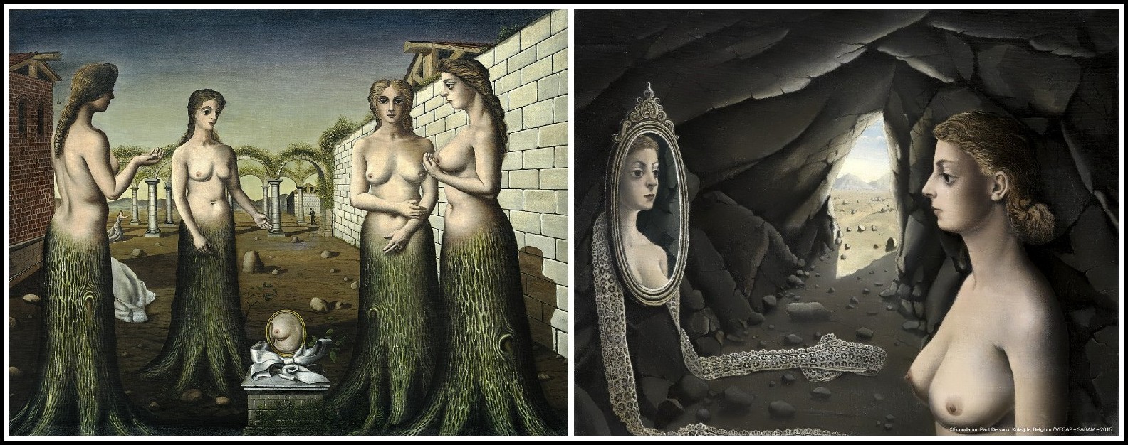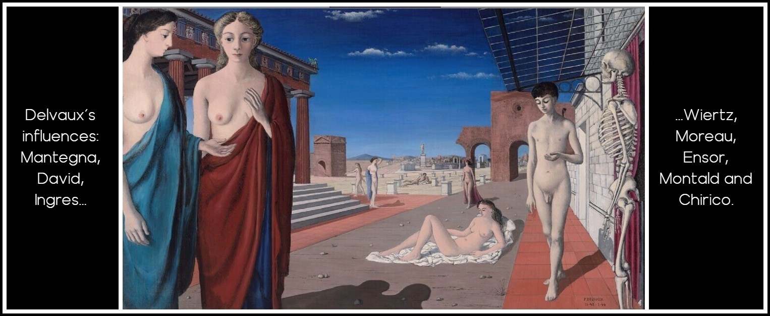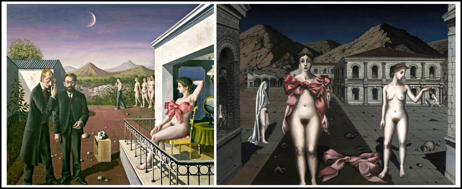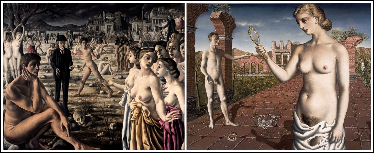 Paul Delvaux, Sleeping Venus, 1944 | Paul Delvaux, The Conversation, 1944 | Antoine Wiertz, Lovely Rosine, 1847