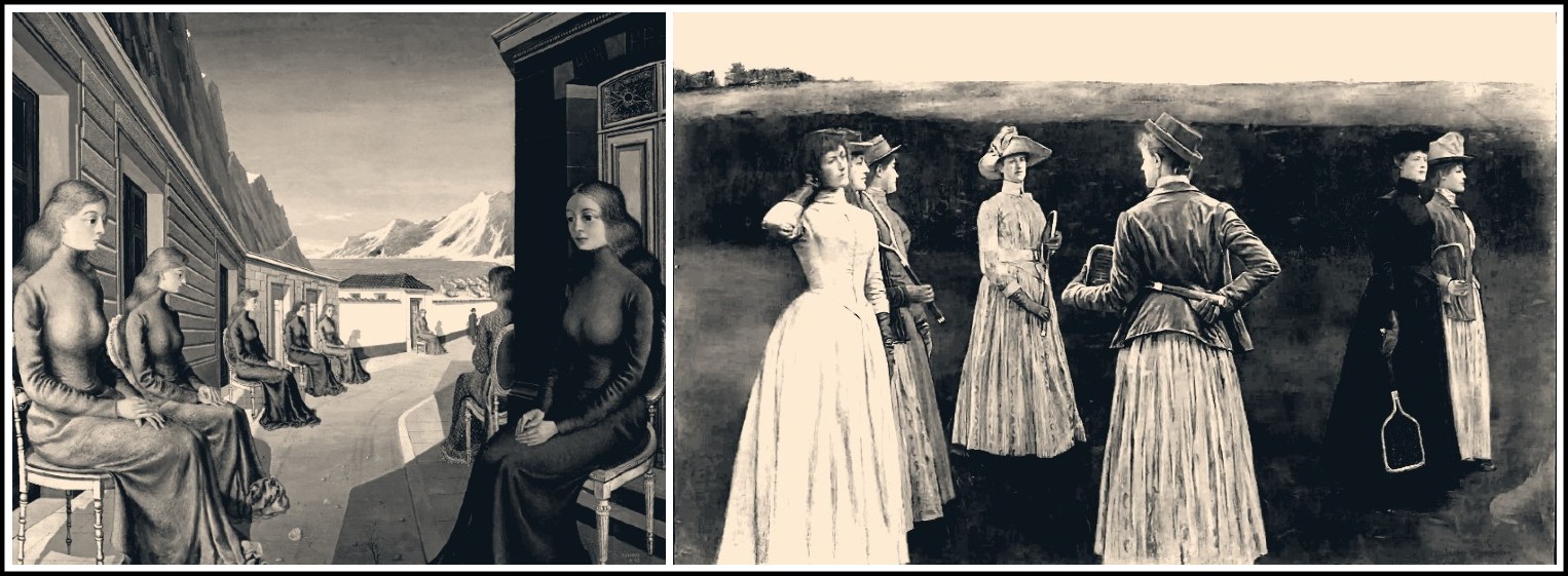Paul Delvaux, Village of the Sirens, 1942 | Fernand Khnopff, Memories, 1889
