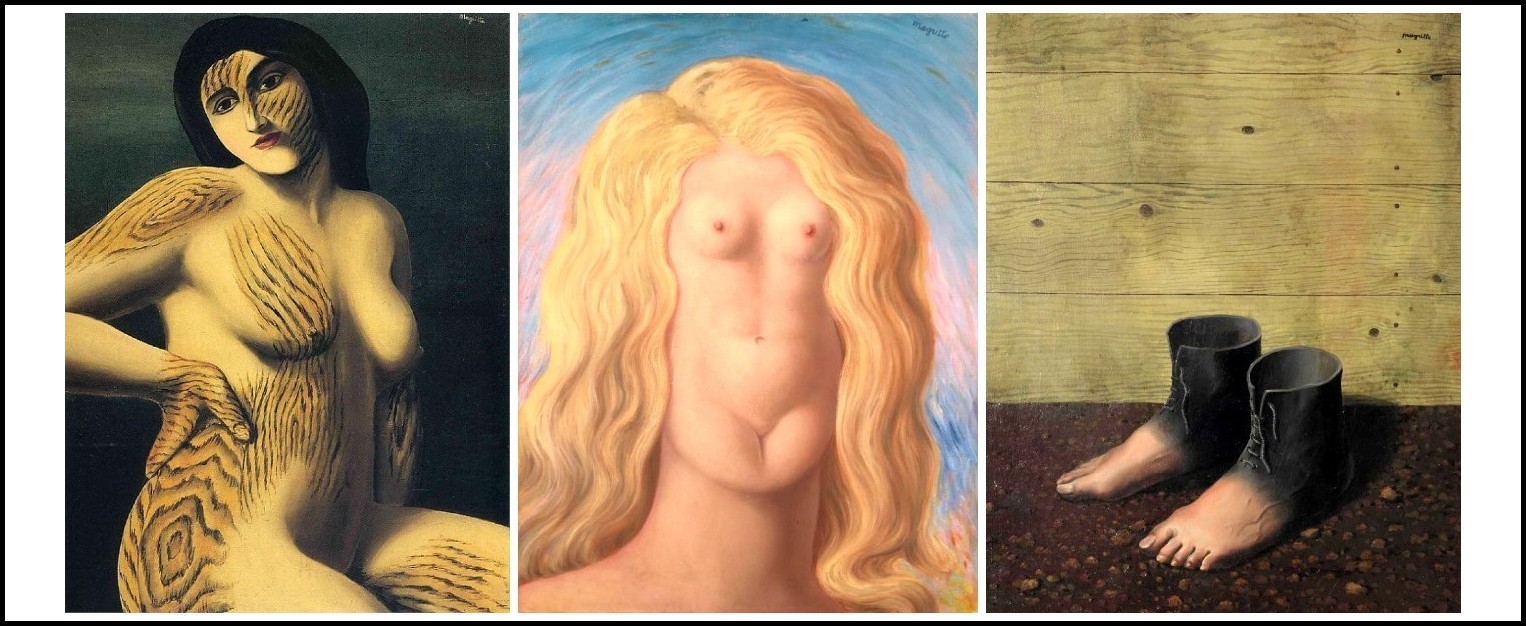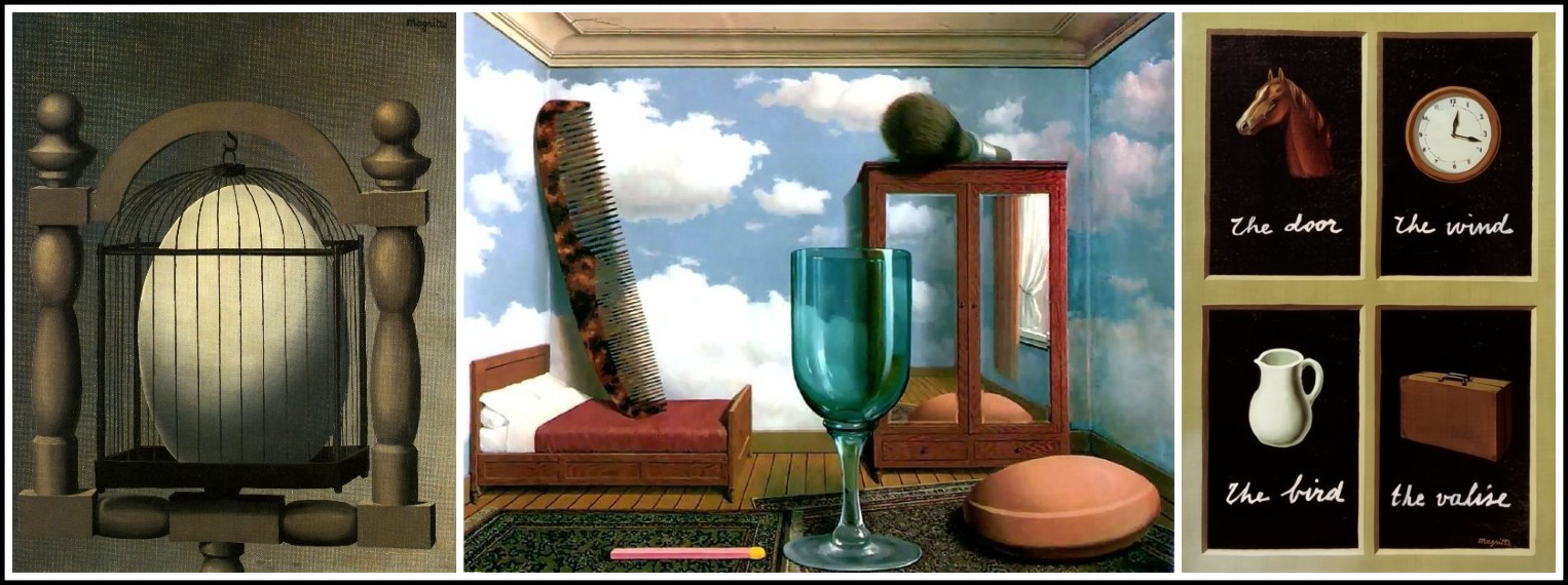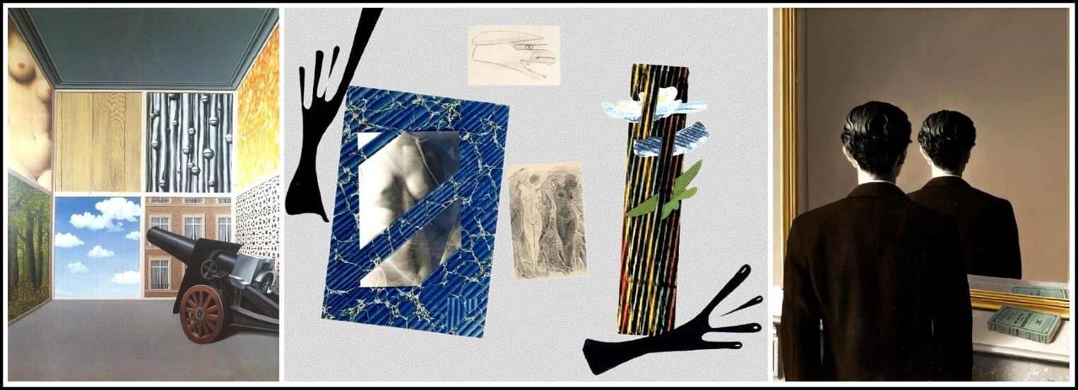 Magritte, Tentative de l’impossible, 1928 | Hannah Hochs, Dada Dolls, 1916 | Man Ray, Portmanteau, 1920 | Magritte, L’Évidence éternelle, 1930 | Magritte, Les jours gigantesques, 1928