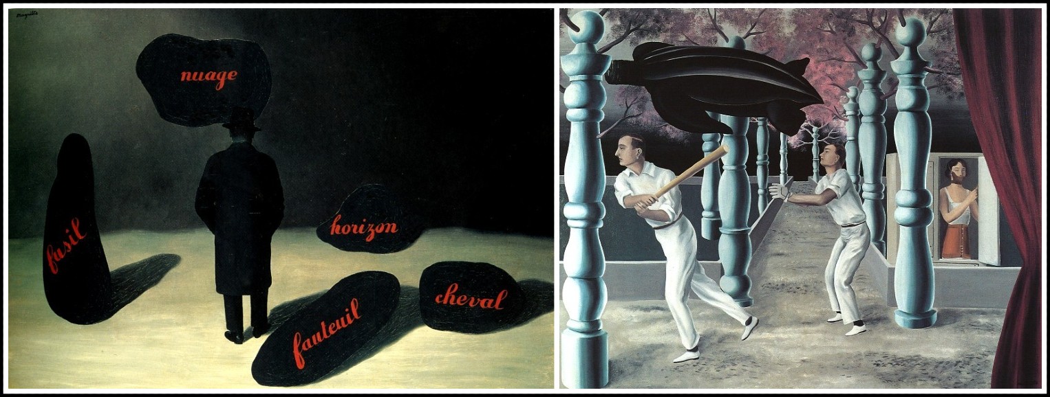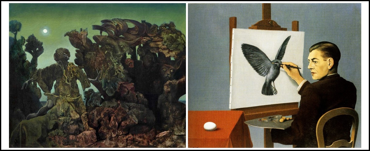 Max Ernst, Épiphanie, 1940 | Magritte, La clairvoyance, 1936