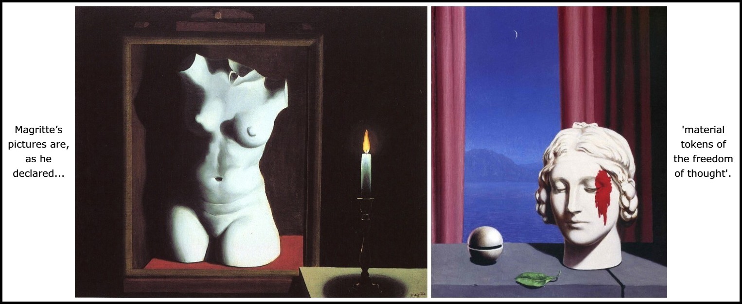 Magritte, Au seuil de la liberté, 1937 | Max Ernst, Untitled (Loplop Presents), 1932 | Magritte, Reproduction interdite, 1937