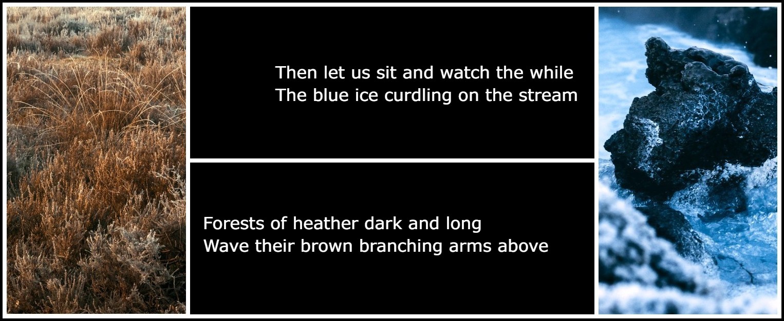 In a later Gondal poem she lists the benign relationships between the animal- and the moorland worlds. These small processes of interaction within nature are felt as too perfect in themselves to need embellishment. Nature is sensed as a pattern of gentle intercommunications between different kinds of individuality.