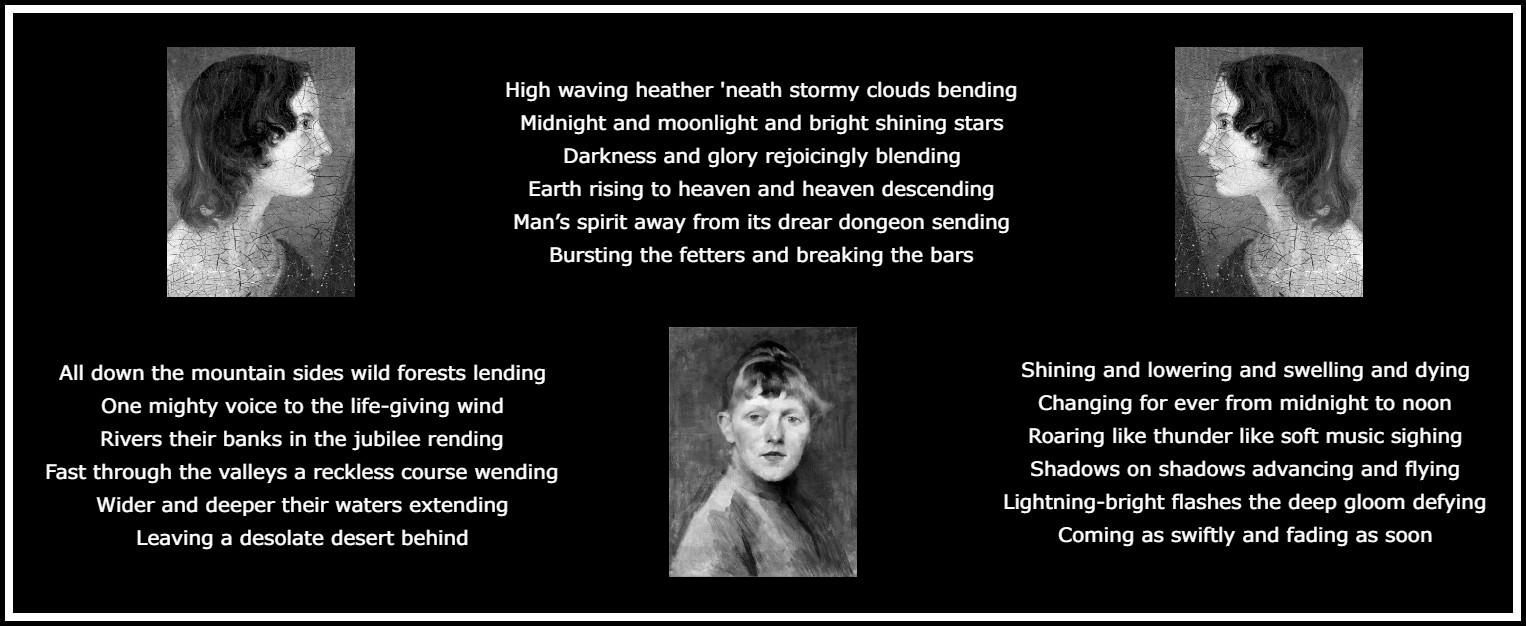 Ten years before she wrote Wuthering Heights, at the age of 18, Emily wrote for the first time on this subject of the spirit-wind, in a precocious bravura-piece. Her poem releases tidal waves of images, in which the wind turns the land to a sea; the normal oppositions and incoherencies between things are beaten down. Contrarieties fuse and flow together.