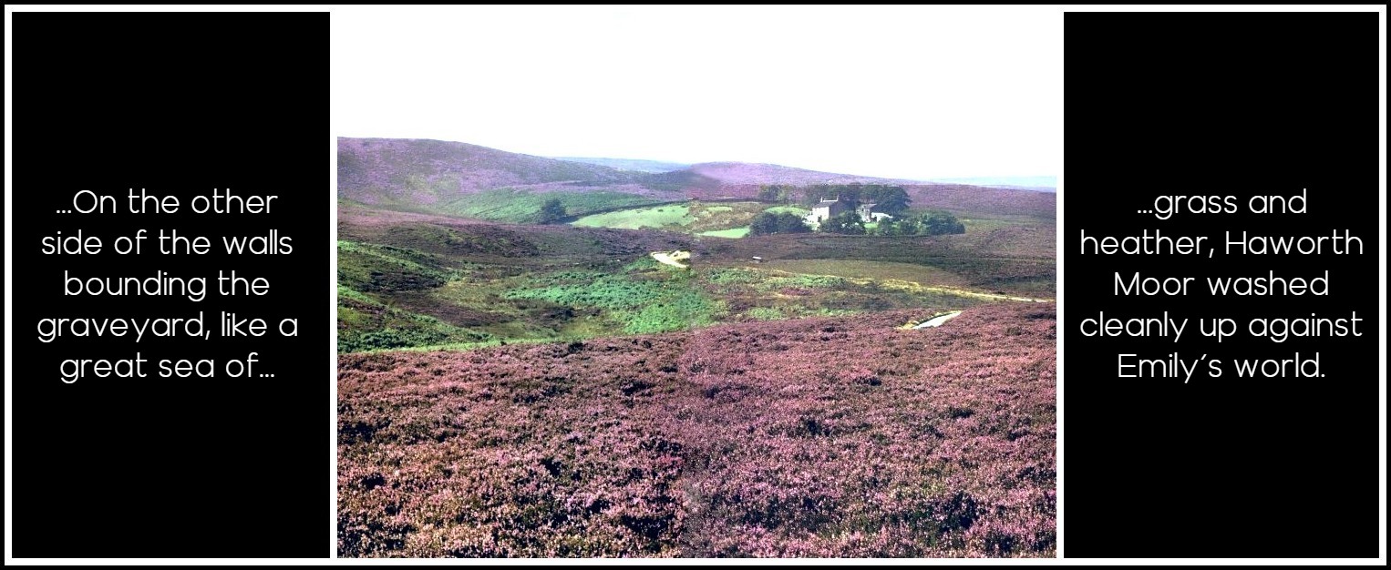 But on the other side of the walls bounding the graveyard, like a great sea of grass and heather, Haworth Moor washed cleanly up against her world. It rose gently beyond the house, dipping and then inclining into the wilder, exposed countryside of Penistone Hill. From here she could walk directly onto adjoining moors, founded on the same sandy, acidic soil formed by the kind of rough stone which is called millstone grit. There is not much that human beings can do with infertile and barren moorland except quarry for rock, and this was done in Emily’s day: the cold flagstones paving the floor of her home, as well as the pavements of the village, the gravestones and the squared stone of which the houses are built, were all hewn out of the moor Or one could dig peat to burn; or simply walk out across the moor seeking solitude.