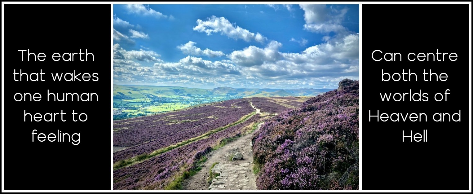 Emily’s joy in the beauty and clemency of the natural world appears as the setting of many of her Gondal poems, in the ‘spell in purple heather’ which acts to bind the observer in a trance, or in the harebell on its ‘slight and stately stem’. She speaks of these as ‘breathing upon’ the human heart, to awaken and warm it into life.
