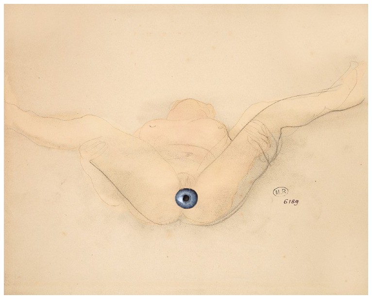 The inversion of the mass is enacted through and upon the human body, particularly the lower body, or what Bakhtin identified as the ‘grotesque body’. As in Bakhtin’s formulation of carnival, Bataille emphasises the ambivalent nature of the human body and its role in stripping away the artifice of social codes. The ripping out of Don Aminado’s eye provides the climax of the metaphorical slippage between eyes and eggs in the text. But the action of Don Aminado’s eye being ripped out, potentially a reference to the key tragic moment of western culture, is then surpassed by a greater moment of horror which is literally experienced through a female body: Ensuite je me levai et en écartant les cuisses de Simone, qui s’était couchée sur le côte, je me trouvai en face de ce que, je me le figure ainsi, j’attendais depuis toujours de la même façon qu’une guillotine attend un cou à trancher. Il me semblait même que mes yeux me sortaient de la tête comme s’ils étaient érectiles à force d’horreur; je vis exactement, dans le vagin velu de Simone, l’œil bleu pâle de Marcelle qui me regardait en pleurant des larmes d’urine. Des trainées de foutre dans le poil fumant achevaient de donner à cette vision lunaire un caractère de tristesse désastreuse.1 Bodily order and organisation becomes completely confused and disorganized, literally representing the de-territorialization of the subject. But the notion of witnessing this transgression within the female body is key. The naked female body is transformed from a passive object to an active site of transgressive horror. Like shamans, women in Bataille’s fiction go beyond the boundaries of social experience and then come back to bear witness.
