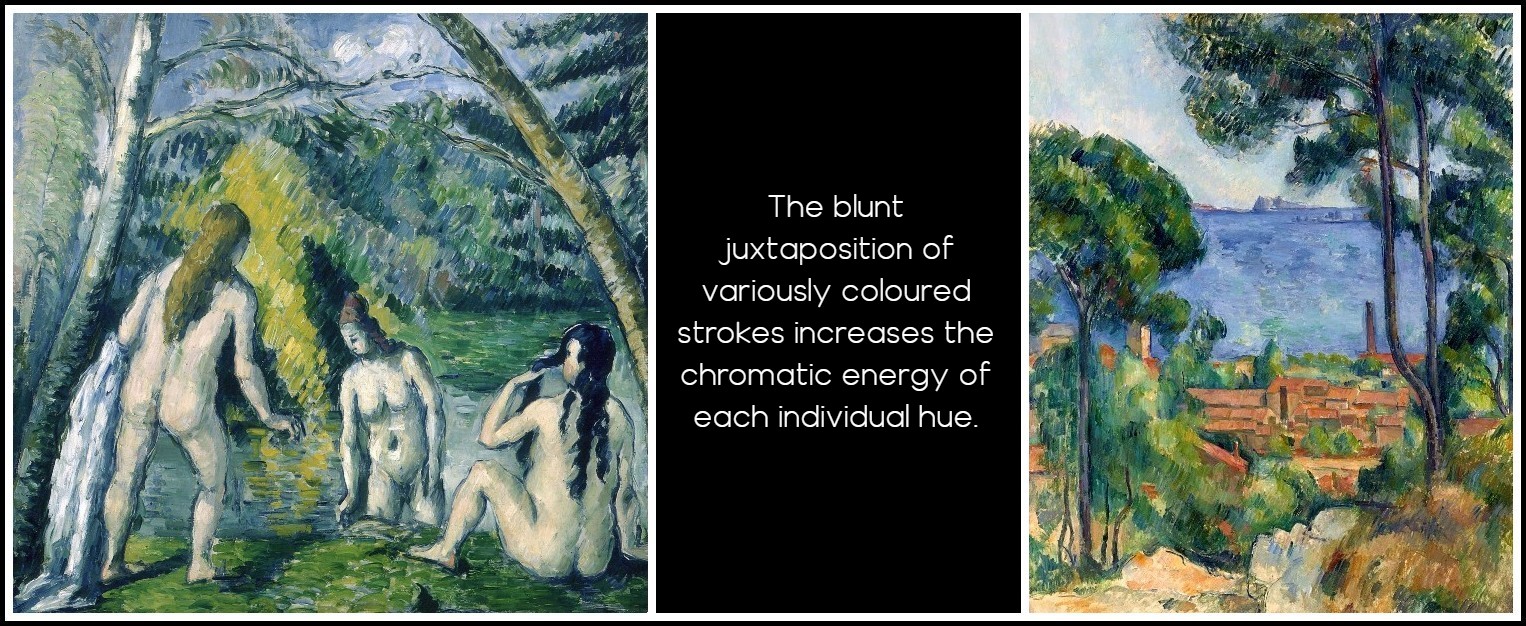 The blunt juxtaposition of variously coloured strokes (the feature Gauguin stressed) was much more insistent in Cézanne’s painting than in Pissarro’s. This increased the chromatic energy of each individual hue; accordingly, Cézanne’s imaginative vision became that much more moving, its emotional force intensified. The effect that Cézanne produced in Three Bathers (c.1879-1882) or View of L’Estaque (c.1883-1885)…