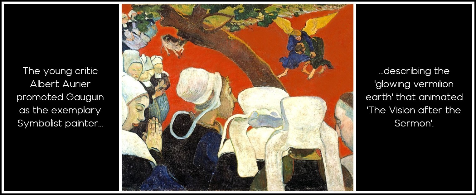 Luck often turned against Gauguin, even when it seemed to be with him. After a disappointing response to two exhibitions of his work in 1889, he found a source of enthusiastic support in the young critic Albert Aurier, a friend of Sérusier. In the March 1891 issue of Mercure de France, Aurier promoted Gauguin as the exemplary Symbolist painter, describing the ‘glowing vermilion earth’ that animated The Vision After the Sermon and calling its creator ‘the initiator of a new art who knows how to read the abstract meaning in every object in nature.’