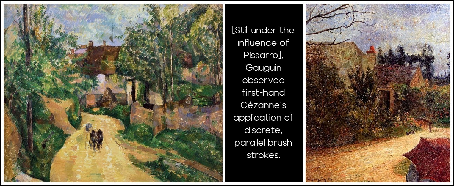 Cézanne, Winding Road in Valhermeil (Auvers-sur-Oise), 1881 | Gauguin, Pissarro’s Garden (Quai du Pothuis, Pontoise), 1881