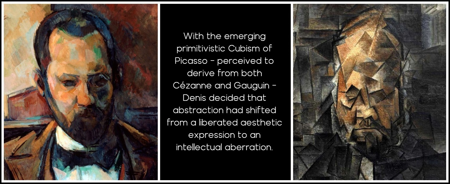 Once manifested as a technique and articulated as a critical principle, material abstraction of Cézanne’s kind had no clear limit, whether physical or conceptual. With the advent of Henri Matisse’s Fauvism and the emerging primitivistic Cubism of Pablo Picasso—styles perceived to derive from both Cézanne and Gauguin—Denis decided that ‘abstraction’ had shifted from a liberated aesthetic expression to an intellectual aberration.