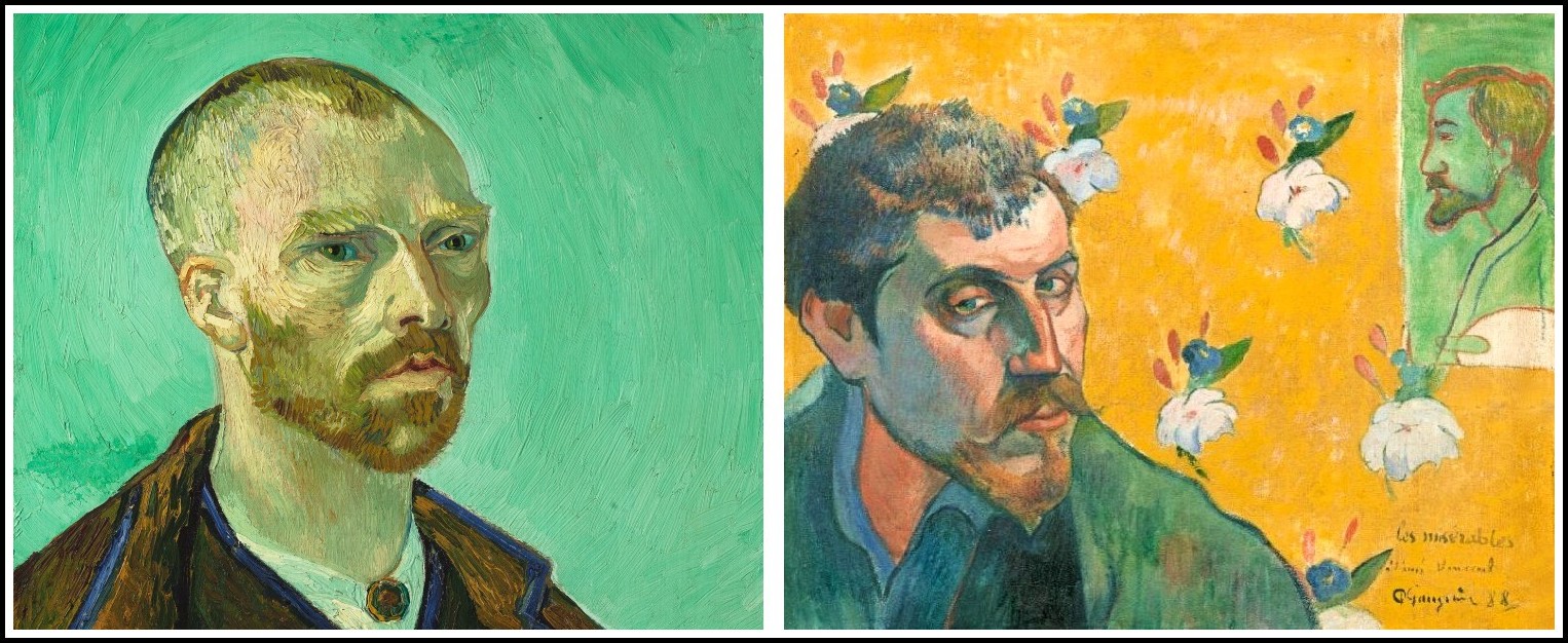 Van Gogh, Self-Portrait (for Paul Gauguin), 1888 | Gauguin, Self-Portrait with Portrait of Emile Bernard (Les misérables, for Vincent), 1888