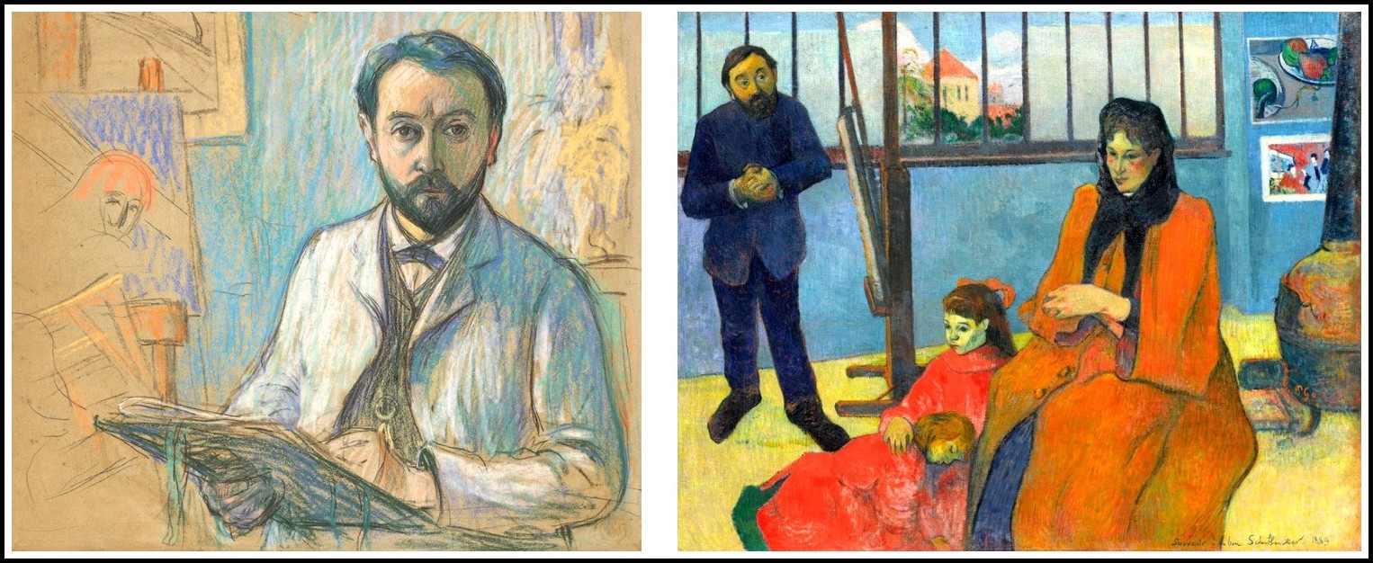 Emile Schuffenecker, Self-Portrait in the Studio, 1889 | Paul Gauguin, Schuffenecker’s Studio, 1889