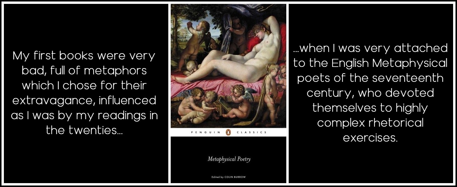 Even earlier. It gradually became simpler with The Quiet American and The End of the Affair. My first books were very bad, full of metaphors which I chose for their extravagance, influenced as I was by my readings in the twenties, when I was very attached to the English Metaphysical poets of the seventeenth century, who devoted themselves to highly complex rhetorical exercises. Today my early novels horrify me, they’re so absurd. There’s nothing worse than poetic prose.