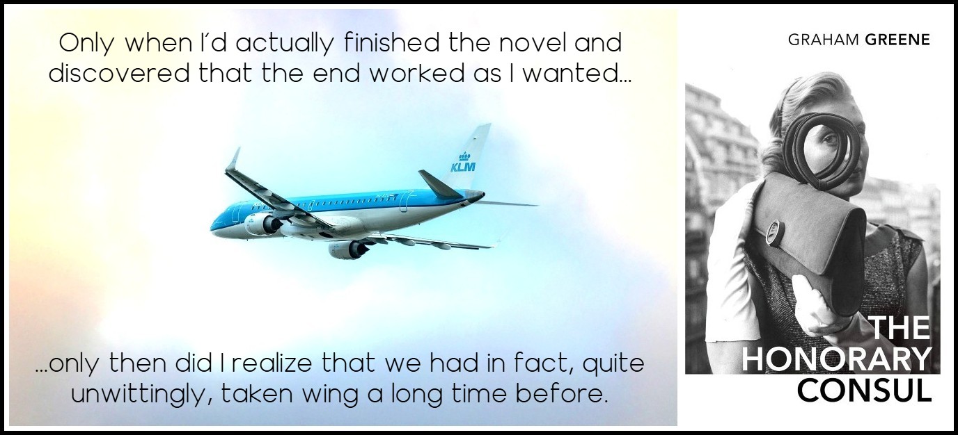 By the end of the novel, they have become different men. That’s not easy to bring off, but I think that in this book I’ve succeeded. But I found writing it hard work; until one reaches a certain point one has to work very hard and with complete lucidity. Then something happens which is rather like an aeroplane taking off; one drives on and on down the runway, suddenly the plane leaves the ground, picks up speed, rises into the air—at that moment one feels a sense of victory. One may have to stay at the controls, but the worst is over. I knew well enough how I would tackle the last chapter of The Honorary Consul. I had all the material I needed. Plenty of choice. It wasn’t organized by my mind, but it was all there, and I relied on my ability to set it down on paper. And yet the wretched book seemed never to take off. It kept rolling along the runway even when the last chapter was approaching. Only when I’d actually finished the novel and discovered that the end worked as I wanted, only then did I realize that we had in fact, quite unwittingly, taken wing a long time before.