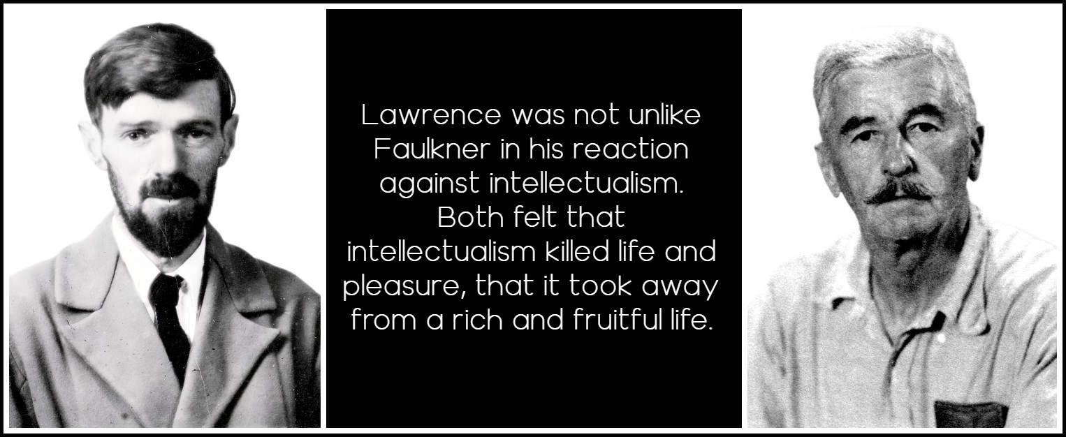 Lawrence was not unlike Faulkner in his reaction against intellectualism. Both felt that intellectualism killed life and pleasure, that it took away from a rich and fruitful life. They both stressed the idea that theory and intellectualism suppressed spontaneity, which is the life-giving force.