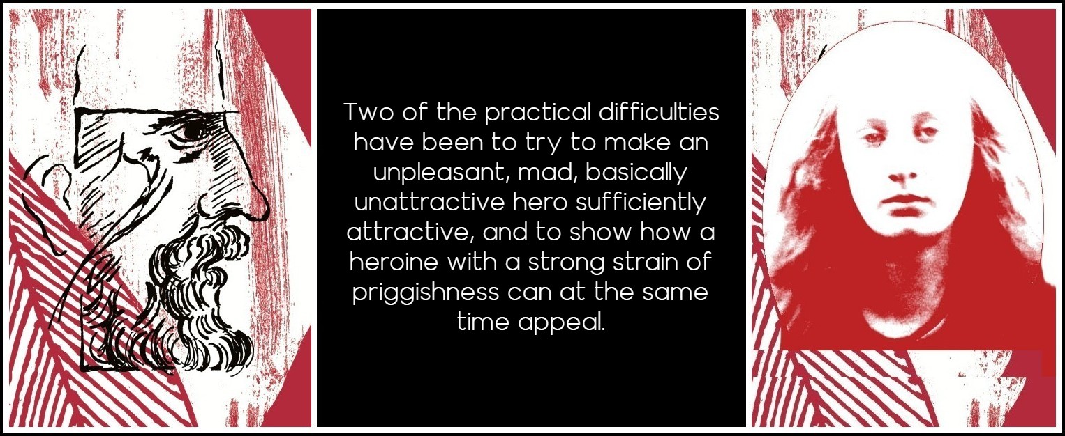 You will see that there is a lot that has to be made convincing. I want to include the crimson plush and organ peals, while making them acceptable to the age of reason by a certain dryness of style. To a certain extent the style is based on that of records of the day, but I have also left some loopholes through which to get my own effects. Two of the practical difficulties have been to try to make an unpleasant, mad, basically unattractive hero sufficiently attractive, and to show how a heroine with a strong strain of priggishness can at the same time appeal. As for the look and the sound of the thing, I have tried to marry Delacroix to Blake, and Liszt to Mahler. Now I really am committed to my own shortcomings! And on reading over what I have written, I see I have failed to convey that there are lots of subsidiary characters, minor alarms and excursions, deaths by thirst, a suicide, an illegitimate child, picnics, balls and weddings.