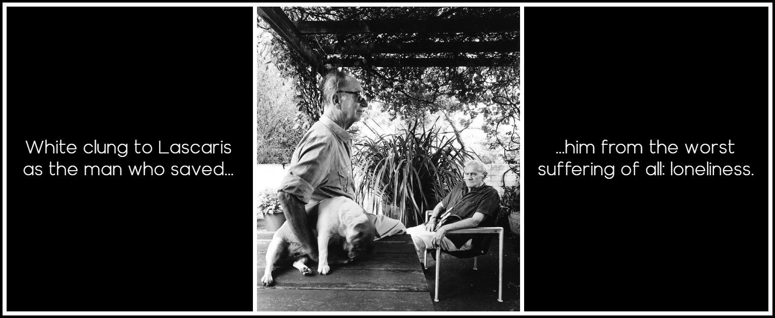 White was aware that his own sense of suffering was, at times, exaggerated; he knew that money had saved him from many of the ordinary miseries experienced by the human race; he clung to Lascaris as the man who saved him from the worst suffering of all, loneliness.