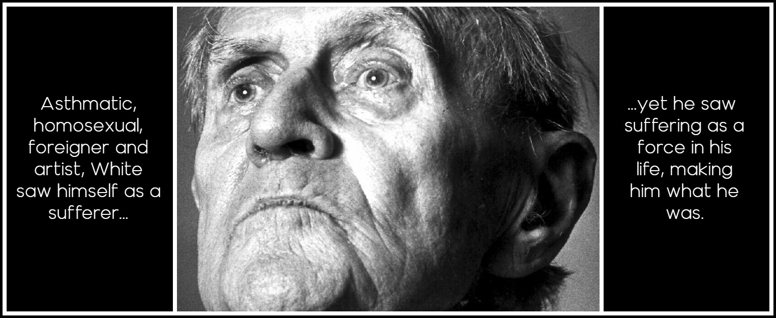Asthmatic, homosexual, foreigner and artist, White saw himself as a sufferer, yet he saw suffering as a force in his life, making him what he was, making us as we are. For him, pain is a force of history, shaping men and events. I have always found in my own case that something positive, either creative or moral, has come out of anything I have experienced in the way of affliction.