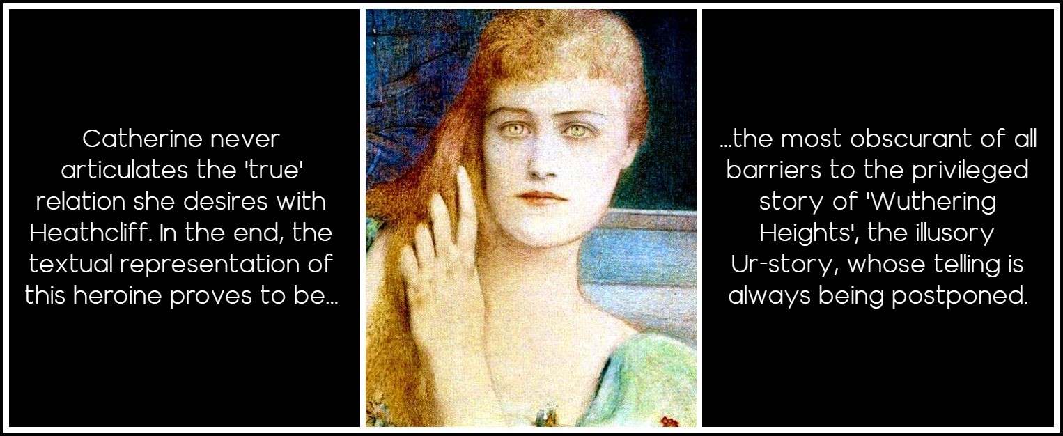 It is difficult to avoid the conclusion that Brontë herself cultivated this disturbing element: from Catherine’s famous confession speech to Nelly, in which she gropes for words to describe her feelings—‘I cannot express it’, she tells her companion—and merely alludes to a dream she is not permitted to disclose, to the last intense moments of her life, Catherine never articulates the ‘true’ relation she desires with Heathcliff. Most confusingly, while we are taught by the text how to feel with the first Catherine, a superabundance of contradictory signs leaves us confused as to what to think of her as a woman. Traditionally, critics saw her as Nelly Dean speaks of her, a perpetrator of the tragedy; more recently, some have allied themselves with Catherine’s own view of herself as victim. In the end, the textual representation of Catherine herself proves to be the most obscurant of all barriers to the privileged story of Wuthering Heights, the illusory Ur-story, whose telling is always being postponed. We are offered partial truths, biased truths and a series of interconnected fragments which never complete the whole story, but direct knowledge of Catherine’s inner self is withheld from us, like the dream which, if Nelly had allowed her to tell it, would ‘explain my secret’, or the contents of the unread books filled with Catherine’s journal, mentioned—again, tantalizingly—by Lockwood.