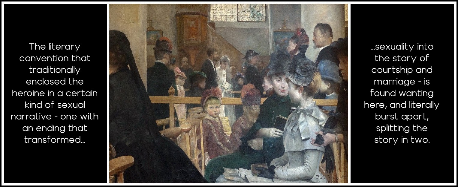 The famous ending is the suggestion of a haunting, not a union of two bodies. Like the interiority of the Fairy cave fascinating to both Catherines, the lure of Catherine’s and Heathcliff’s spirits, last seen ‘under t’ Nab’, which haunts the novel’s conclusion, invokes the unresolved nature of sexuality, with its uneasy relation between a ‘quenchless’, irreducible Will and the necessity of submitting Desire to social convention. Though in Wuthering Heights the code of identity is inscribed onto a revisionary story of sexual love, the refusal of closure is the novel’s resistance to disclosure of the female self. Panelled bed, coffin, cave or fiery Hell are the signs of female sexuality as a dark space, enclosed as an untellable secret shut off and shut up by social, religious or bodily limitations. Both definition and articulation disrupt the unspeakable force of Desire which is the seed of a Brontëan female identity, and at the close of the novel the first Catherine continues to resist this process as much as the second submits to transformation.