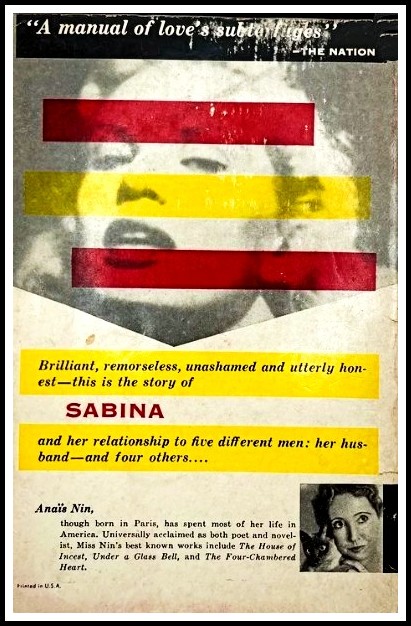 Anaïs Nin, A Spy in the House of Love, 1957 back cover