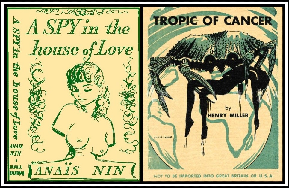 Anaïs Nin, A Spy in the House of Love, 1955 cover colorized | Henry Miller, Tropic of Cancer, first edition (1934) cover