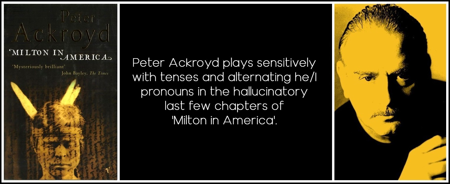 The present tense is extremely current now, though conventionally, in ‘pronouned’ narrative instance. For instance, Peter Ackroyd plays sensitively with tenses and alternating he/I pronouns in the hallucinatory last few chapters of Milton in America (1996). In fact, it crept in more and more during the eighties. It is current simply as a tense, requiring and getting a first person. Indeed, we’re flooded with first-person narratives at the moment, in both past and present tenses. But the present has not been used, to my knowledge, as new narrative sentence in speakerless, narratorless narrative (a modern version of represented speech and thought), which paradoxical use is what gives Robbe-Grillet such a distinctive tone. Even as tense, it’s often misused. Indeed, it is difficult to use as narrative tense, not only for all the grammatical reasons I have touched upon, but also for stylistic reasons: at every sentence the constraint excludes easier formulations and forces one to find an alternative. Like any constraint, the present tense is a limitation, but one that allows greater concentration on one aspect, simultaneity.