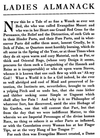 Page the First, Djuna Barnes, Ladies Almanack, 1928