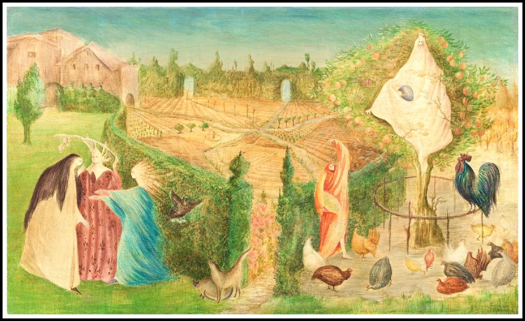 The theme of woman’s role in the creative cycle also underlies much of Leonora Carrington’s work of the 1940s. The Kitchen Garden on the Eyot…