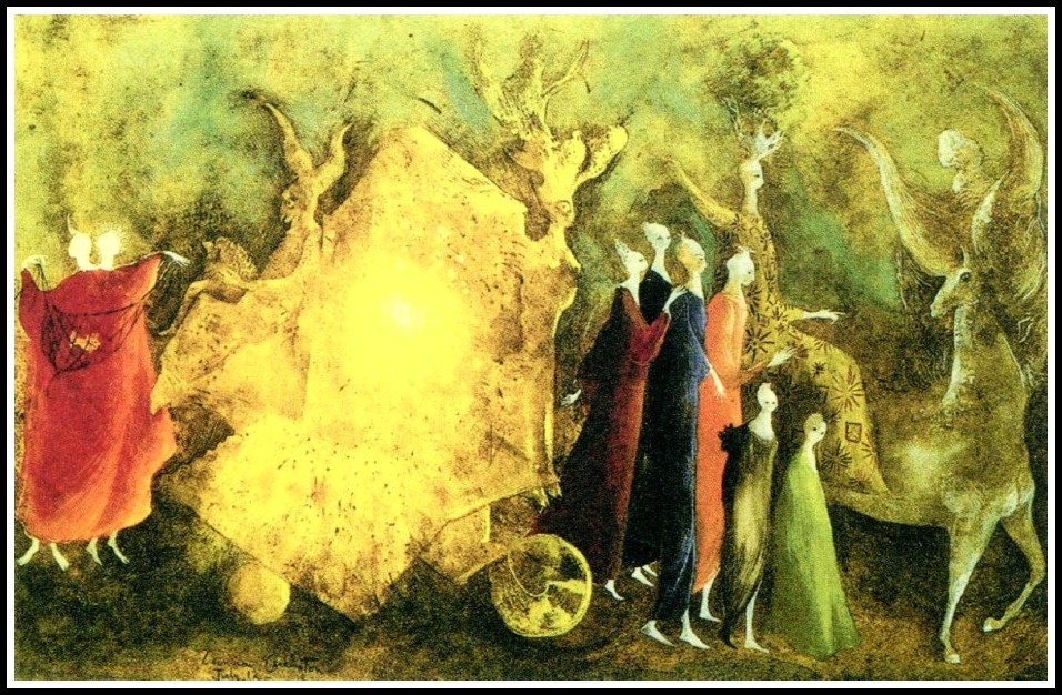 Remedios Varo, Solar Music, 1955 | Leonora Carrington, Again, the Gemini Are in the Orchard, 1947