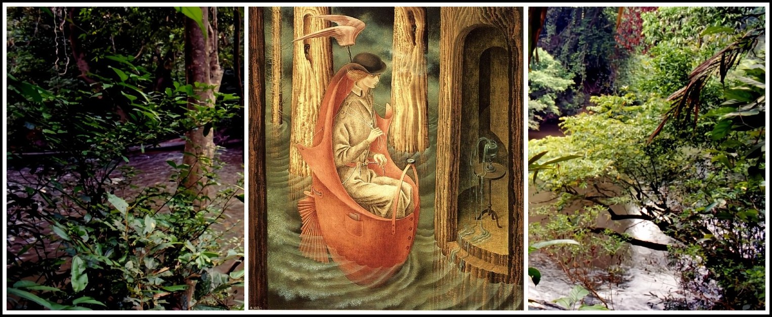 Remedios Varo, Exploration of the Sources of the Orinoco River, 1959 | Background photo: Wietse Jongsma, Unsplash