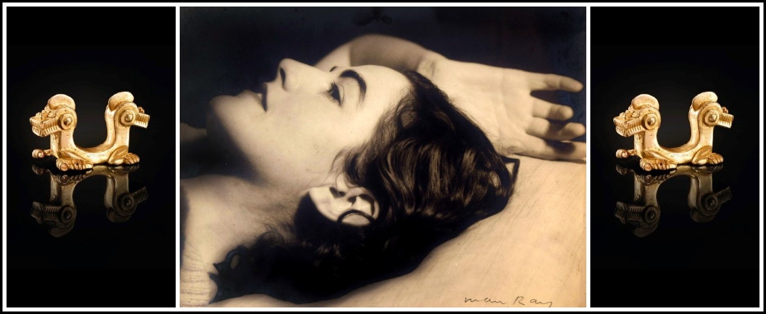 Alice Rahon, early 1930s (Photo: Man Ray) | Pre-Columbian Gold Pendant, c. 750 A.D.