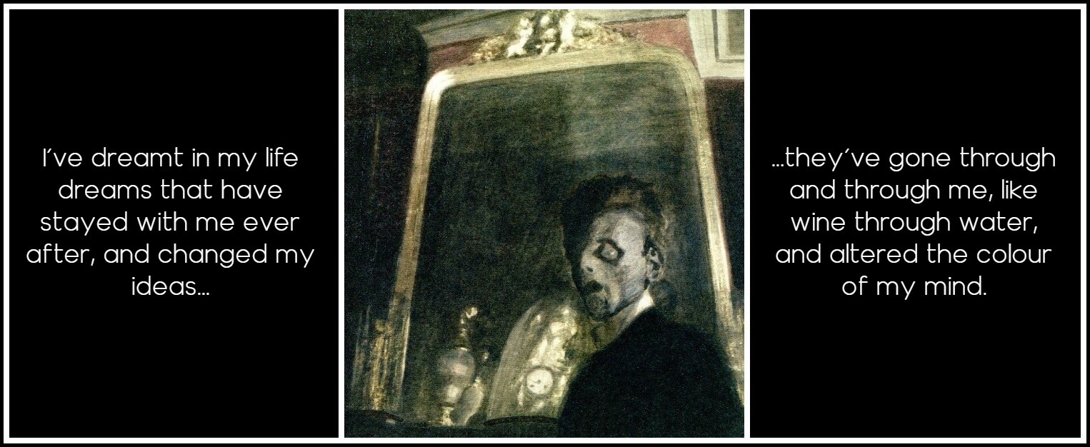 ‘And so do I. I’ve dreamt in my life dreams that have stayed with me ever after, and changed my ideas; they’ve gone through and through me, like wine through water, and altered the colour of my mind. And this is one—I’m going to tell it—but take care not to smile at any part of it.’