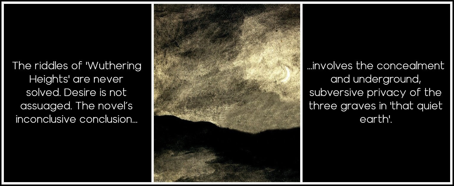 We notice how cagey Nelly, the voice of common sense, is about admitting that she is also a dreamer; and then how she panics and tries—three times—to repress the dream-message. Cathy, on the other hand, open to the submerged contents of her unconscious mind, is given to dream-interpretation and, in her thrilling description of the way deep dreams can charge and change identity, comes very close to articulating the powerful effect Wuthering Heights has had on generations of readers, washing through them indelibly ‘like wine through water’. This image is very beautiful and moving. Yet the effect has a shadow side, cunningly calculated to destabilize the reader by stranding her or him between illusion and reality, in that realm of eery beguilement of the Gothic nightmare, located by Emerson in a sequence of pertinent images: Where do we find ourselves? In a series, of which we do not know the extremes, and believe that it has none. We wake and find ourselves on a stair: there are stairs below us, many a one, which go upward and out of sight. Sleep lingers all our lifetime about our eyes, as night hovers all day in the boughs of the fir-tree. All things swim and glitter. Our life is not so much threatened as our perception. Dream delivers us to dream, and there is no end to illusion. The riddles of Wuthering Heights are never solved. Desire is not assuaged. If the Earnshaws echo in their names the keyword ‘earth’, it is not on but in the earth that the first generation finds its needs not resolved but dissolved and buried, for good. The novel’s inconclusive conclusion involves the concealment and underground, subversive privacy of the three graves in ‘that quiet earth’.