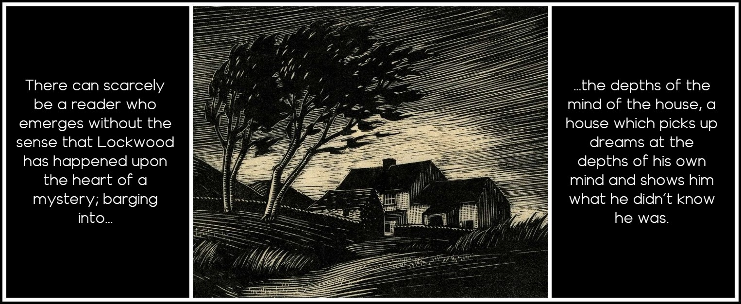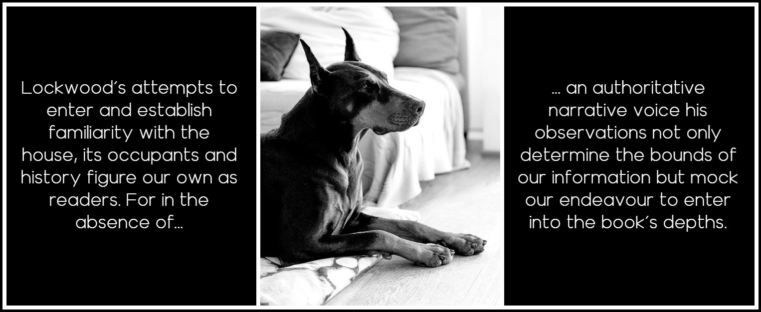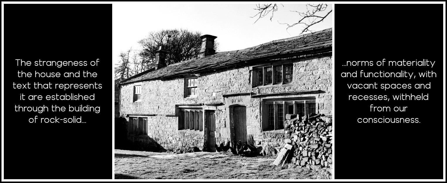 Food is on view: oatcakes, beef, mutton and ham. The class-system of working master, retainer, female servants and farm-hand operates. Every detail of the house-interior seems to be known; precisely observed. Indeed the house of the book is so well-built and furnished, with an eye to the stability of its architecture and decent functioning, that paradoxically its semblance of three-dimensional reality makes for a species of uncanniness. We could (we feel) go there and find it exactly so. The author behind the narrators has researched it exhaustively, and round the clock. What, for instance, is the state of the fire at 3am precisely? The ashes are hot enough to kindle a candle; cool enough for a cat to bask there. The uncanniness of the interior arises in part from its foreignness to the Southerner, Lockwood, who, blundering in to the tail-end of an untold story, lacks the gumption to ask the sensible questions and stokes the fire of mystery, the tempers of the guard-dogs and the shades of the past. The strangeness of the house and the text that represents it are established through the building of rock-solid norms of materiality and functionality, with vacant spaces and recesses, withheld from our consciousness.