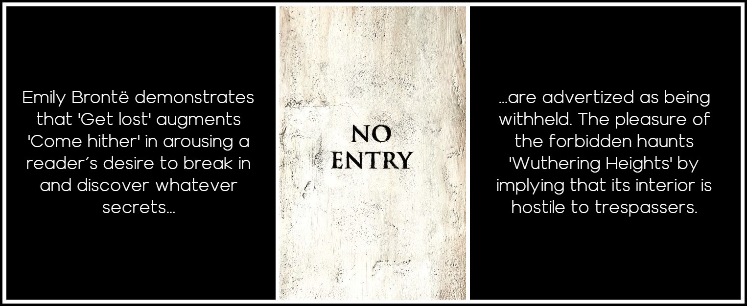 The act of reading is generally assumed to be a leisurely and comfortable way of getting ‘in’ to the author’s mind. We say that we are ‘deep in a book’ or ‘I haven’t got into it yet’; or—most appropriate to Wuthering Heights—that we ‘lose ourselves in a book’. We lose, that is, our selves. Most traditional novels hold wide the door, issuing genial invitations to the ‘dear reader’ to enter and share the privileged fascinations of sharing space with the author. Few novels advertise indifference or frank contempt for the guest’s pleasure. In breaking this rule, Emily Brontë demonstrates that ‘Get lost’ augments ‘Come hither’ in arousing a reader’s desire to break in and discover whatever secrets are advertised as being withheld. The pleasure of the forbidden haunts Wuthering Heights by implying that its interior is hostile to trespassers. Gothic antecedents, from Hoffmann’s The Devil’s Elixirs to Hogg’s The Private Memoirs and Confessions of a Justified Sinner, do not explain this fortification against the reader. Gothic writers prefigure Emily Brontë’s framed narrative device by pretending to disappear into an editorial role. Where Hoffmann is genial, Hogg is severely documentary. In Emily Brontë the fictive ‘editor’ has executed a vanishing-act: executed himself on a literary level, to all intents and purposes. There is no one there to greet and draw us in, save a gauche outsider, the narrator Lockwood, intent on barging into the house of a neighbour nearly equally set on barring him out. The ‘walk in’ was uttered with closed teeth and expressed the sentiment, ‘Go to the Deuce!’. The suggestion that ‘Come in’ signifies ‘Clear off’ is reinforced by the fact that the owner makes no effort to unchain the gate until the visitor’s horse is shoving at it with his breast. The novel begins in sharp, bizarre farce.