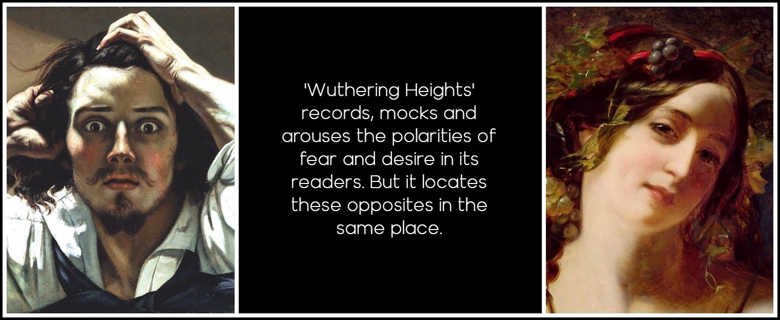 The text comprehends the coherent incoherence of dreams, their bipolar functioning, and the urgent displacements and dislocations through which they must transmit the singular doubleness of their deepest truths. Lockwood may be a bit of a fool. He is in this respect one of and with us, bourgeois book-buyers or borrowers. But his unconscious mind is no fool at all. It recognizes the motherlessness of Heathcliff, his changeling status, and connects at the deepest level, though with absolute reluctance, with the storm of desire, violence, grief and loss which centers at the Heights. It works overtime to decode the scrambled messages of the night. The Heights story penetrates Lockwood and opens the locked cabinet of the self, just as the novel pierces into the recesses of the reader. For we too may have longed for the return of the dead; that the borders be breached which seal them off from our view: Heathcliff ‘s invocation ‘Come in! come in! Cathy, do come’, framed in the doorway in the chamber of his isolation, represents that desire. At the same time, the return of the dead is our greatest nightmare, represented in Lockwood’s ‘Begone! I’ll never let you in’. This double attitude of terror and desire is split between the two persons; there are two dreams, a ‘male’ one of Jabes and a ‘female’ one of Cathy, each self-sealed implacably against the other, yet mutually necessary.