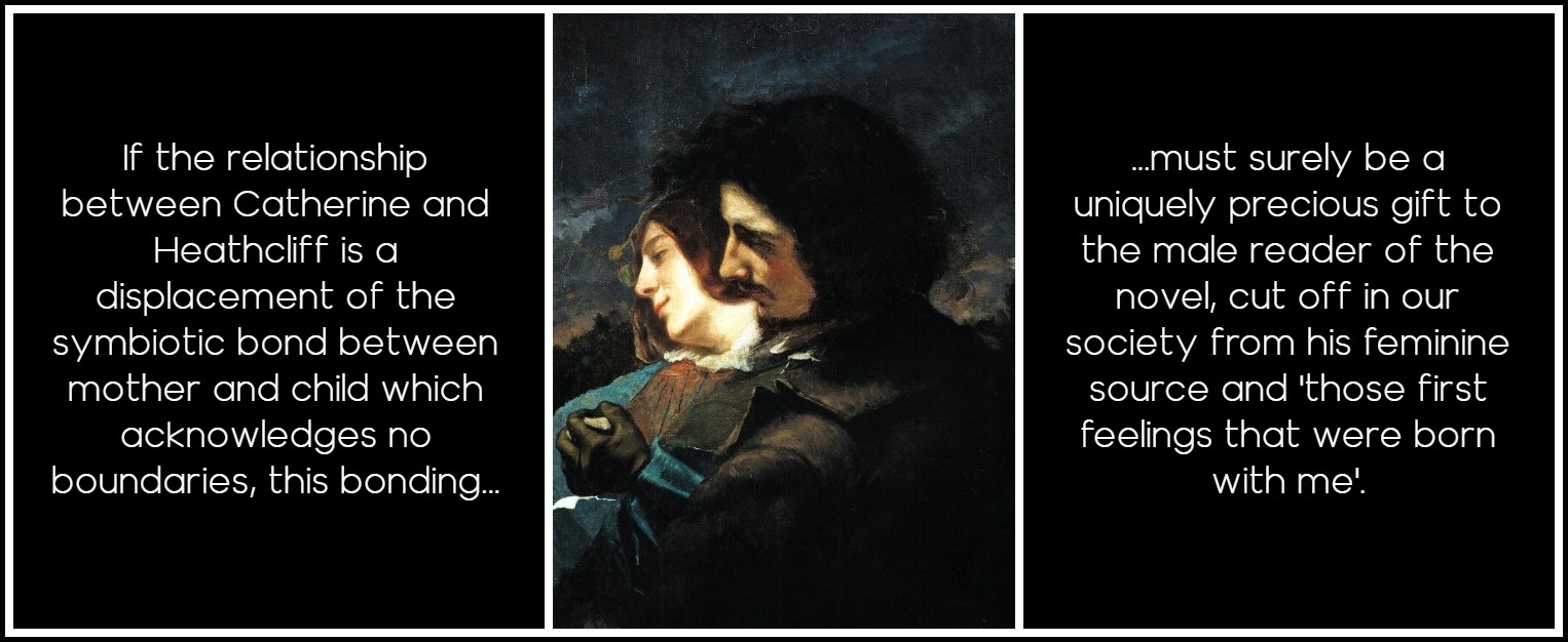 Allowing for individual differences, does it make any difference whether the reader encountering this mesh of irony is male or female? The answer to such a question in relation to Jane Eyre would be an unqualified ‘yes’, judging by the generations of young women who have seized on Jane’s pilgrimage as a unique voicing of their own story of female need, oppression, rebellion, conflict and assertion. In relation to Wuthering Heights, the answer must surely be yes—and no; no—and yes. This dialectical answer, aggravating no doubt in equal measure to those who read the novel as an exclusively feminist text and to masculine readers to whom Wuthering Heights is profoundly dear, is not intended as a liberal compromise but as the fullest response this reader can make to the doubly bound extremism of the novel. For while Wuthering Heights is an account of female and male sundering and self-division, centralising woman and making man secondary, it is also a holistic account of male-and-female bonding and identity with one another, which at once opens and closes the breach between the sexes, by referring both back to the unitary source in the lost mother and the mother-world.