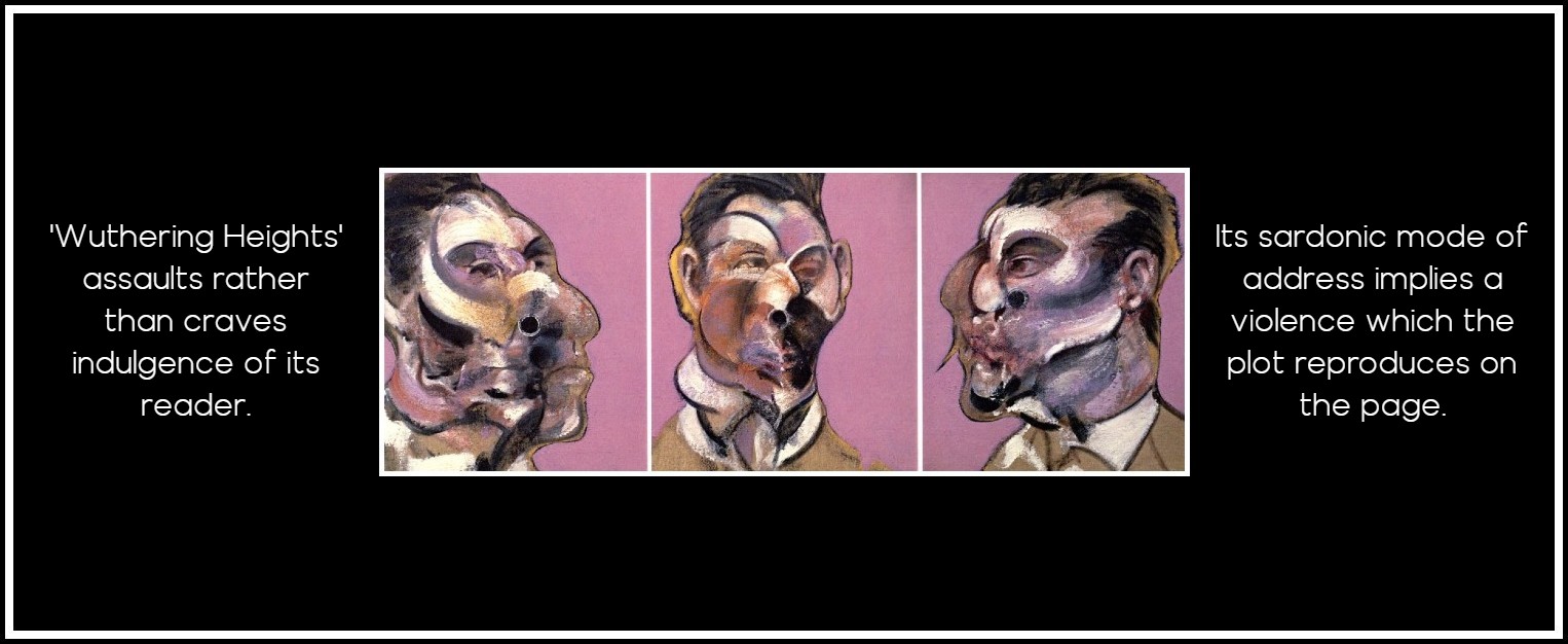 But Heathcliff is not a monster. He is a kind of norm. This perhaps is the most shocking thing of all: that the continuum of violence in Wuthering Heights represents the merest realism, actually in many lives, and potentially in all others. To be able to say ‘I am Heathcliff’ is to have grasped the terrible nettle of a book which does not address itself to readers fawned upon as ‘dear reader’ or ‘courteous reader’, ‘gentle reader’, stroked until we purr with the pleasure of confederate illusion. Wuthering Heights assaults rather than craves indulgence of its reader. Its action is an unremitting concatenation of quarrels, raining insults, blows, knives, gunshots, flinging objects and persons about or dropping them sensationally over the bannisters. The sardonic mode of address used by characters and narrator implies a violence which the plot interminably reproduces on the page in reiterated acts of manic cruelty. Heathcliff ‘kicked and trampled on’ Hindley, and ‘dashed his head repeatedly against the flags’; he snatches a dinner-knife and flings it at Isabella’s head; he treats the second Cathy to ‘a shower of terrific slaps on both sides of the head’. On and on goes the sordid mayhem until it becomes a dreary matter of fact. The world is like this, it seems to suggest, the stronger thrashing the weaker to pass on his damage.